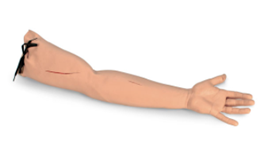 Braço de treinamento para sutura cirúrgica.Possui uma pele artificial de vinil sobre uma espuma que pode ser suturada, possibilitando praticar centenas de suturas.