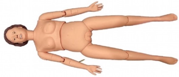 Manequim de enfermagem articulado de fisionomia feminina com 1,55 de altura
