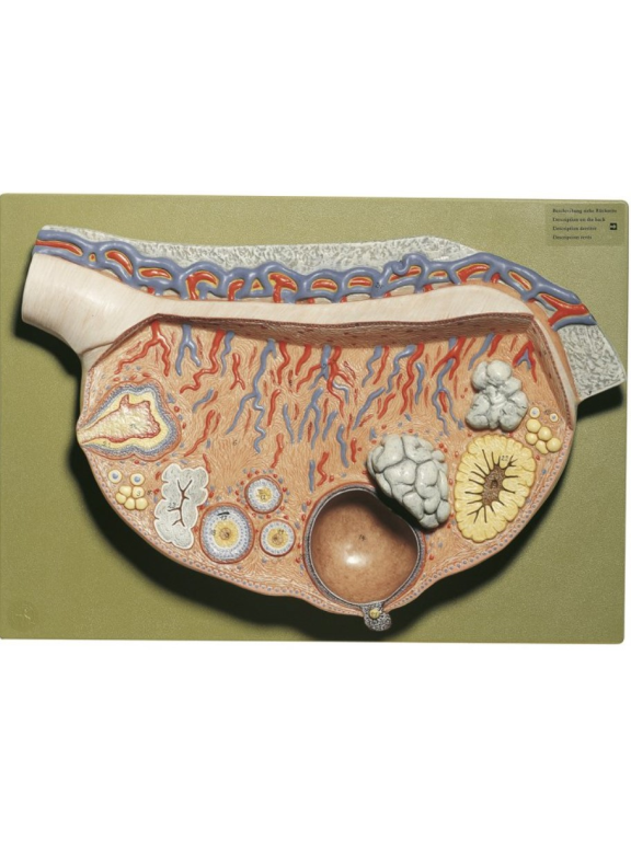 Representado em aproximadamente 3x o tamanho, em SOMSOPLAST® . Representação tridimensional dos folículos em diferentes estágios de maturidade, do corpo rubro, lúteo e albicans. Não pode ser desmontado